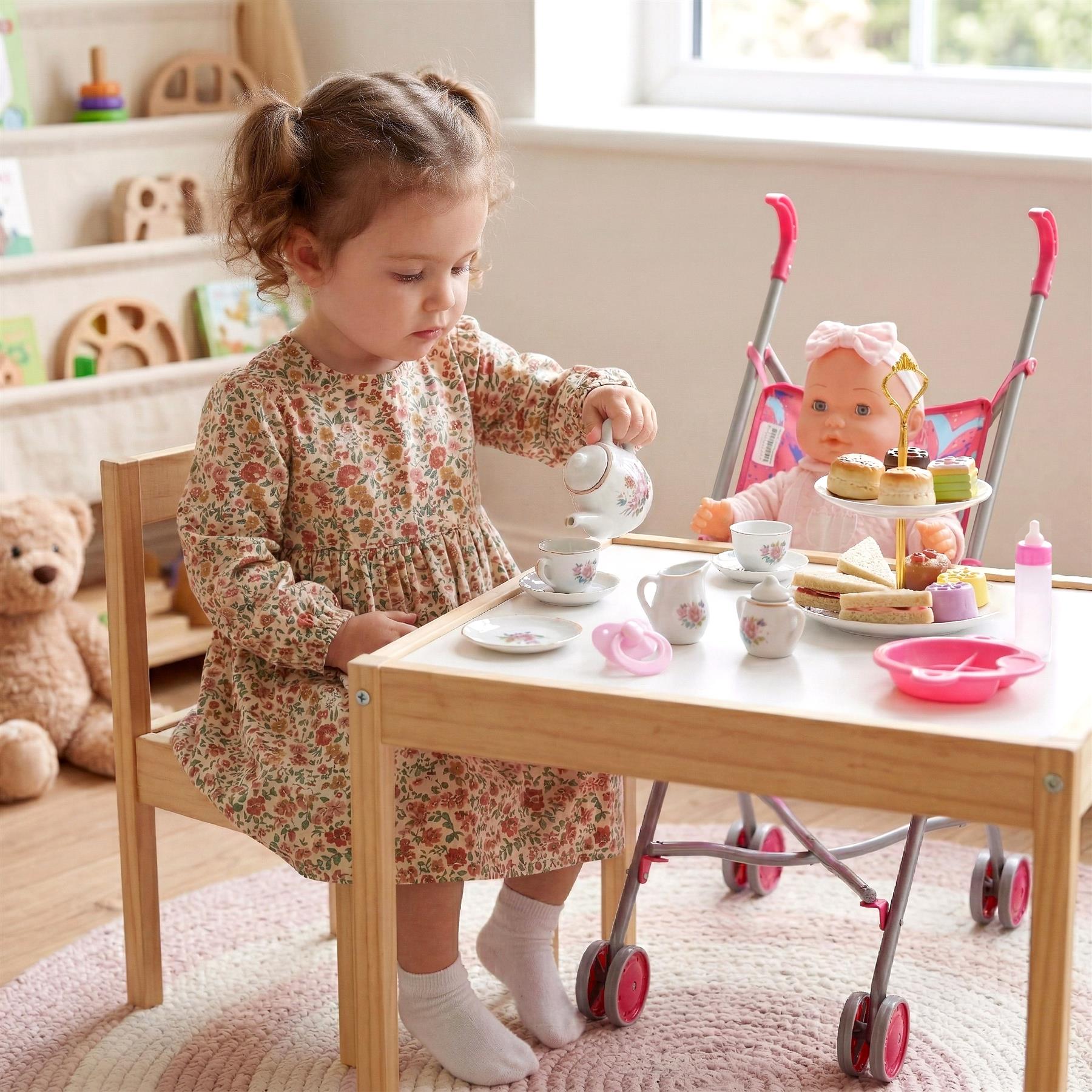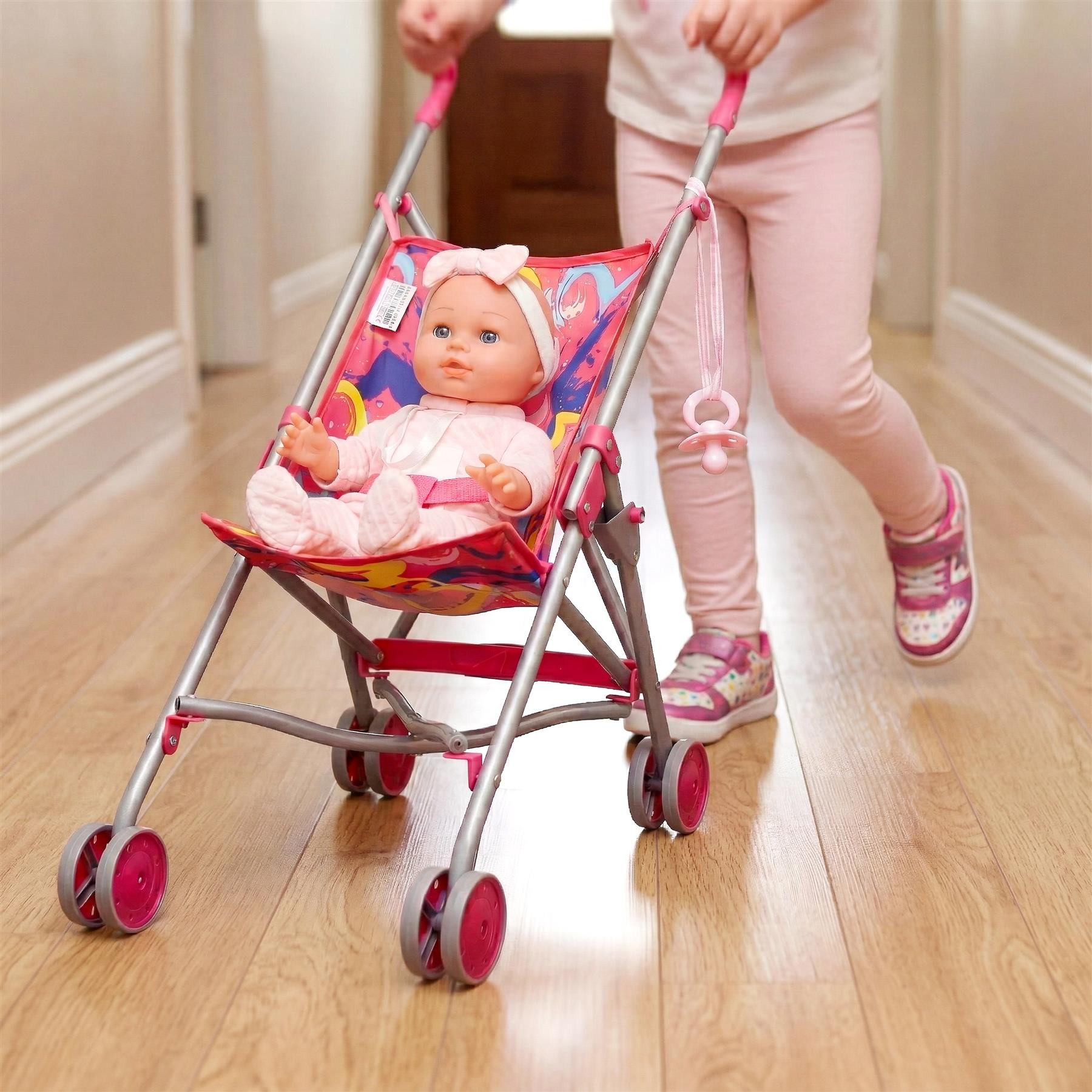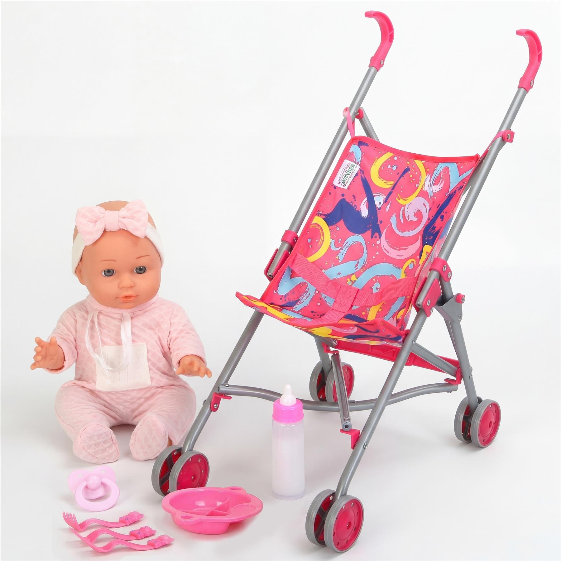 Lovely doll buggy, bring your BiBi Dolls with you for all kinds of adventures. Now with doll and selection of feeding accessories included!